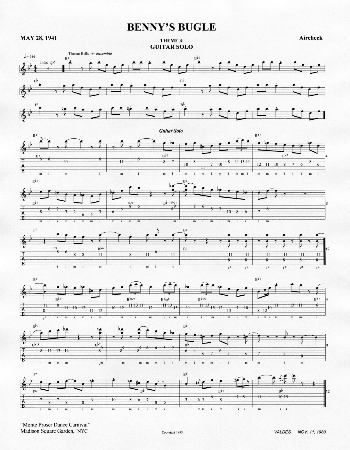behind the first CC solo chorus. Another stunning run gets off the second guitar-solo chorus (mm 1-5) at the lickety-split tempo.