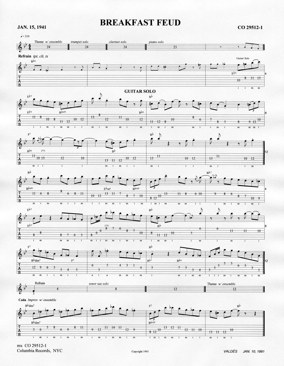 Charlie Christian’s solo on this take of Breakfast Feud is especially interesting for the lyrical/rhythmic approach, tremendous drive, and