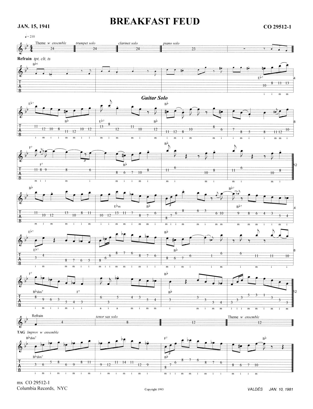 The freely improvised four-bar tag that closes out the tune has CC playing a B♭dim7 ascending from the 3rd fret to the 14th fret in