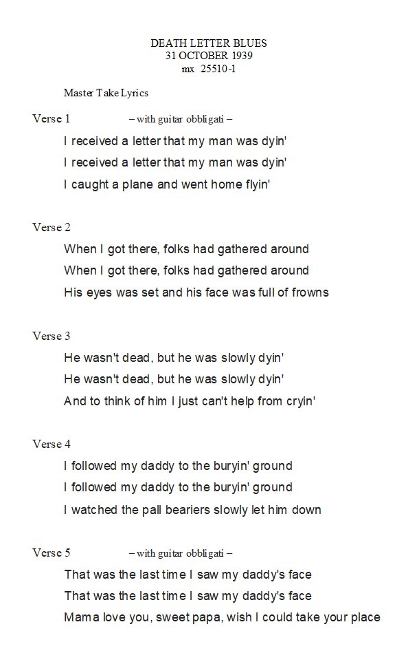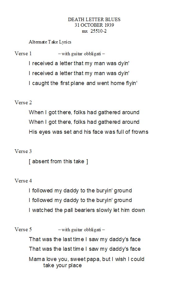 Death Letter Blues 31 October 1939 mx 25510-1 (master take)