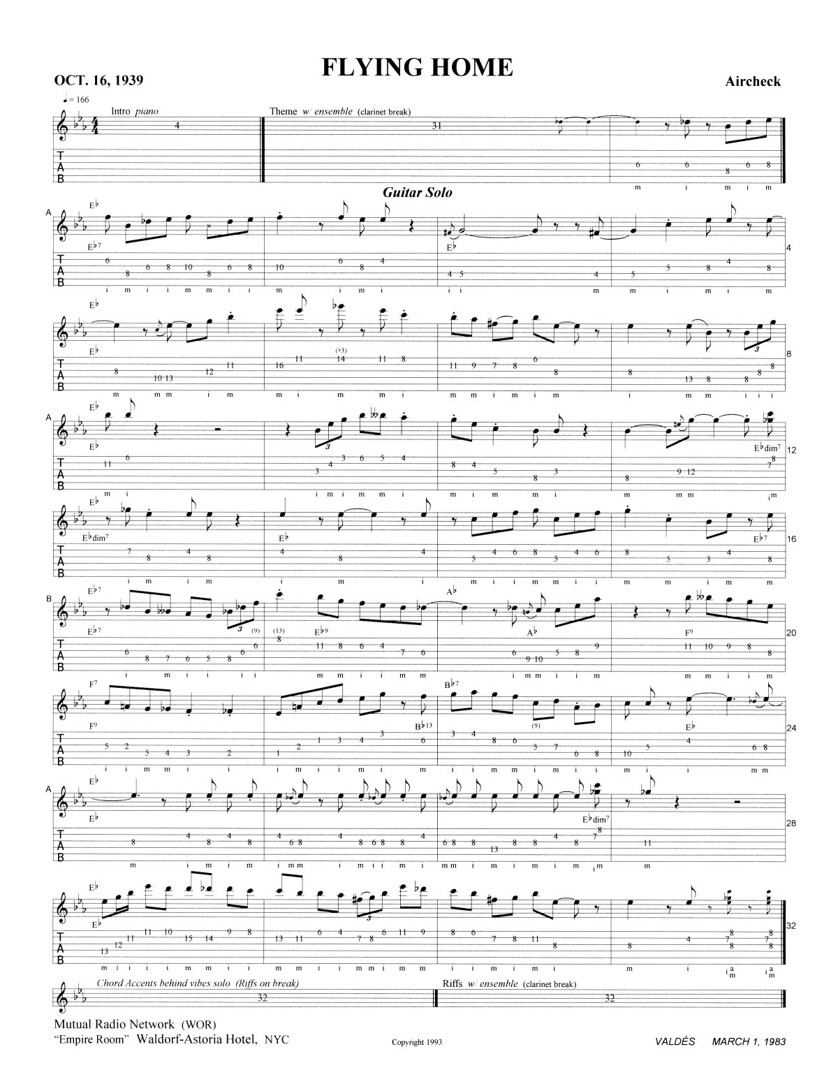 The usual four-note phrases begin the guitar solo. Then a bit further on, we