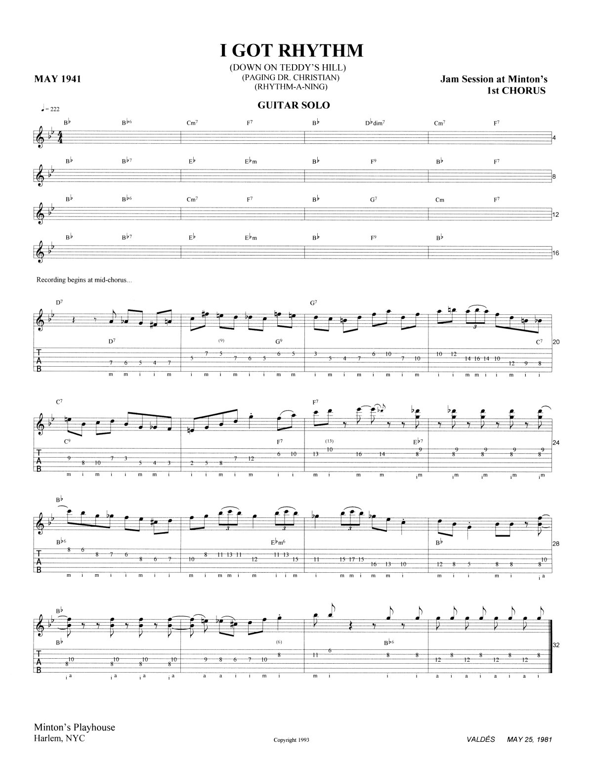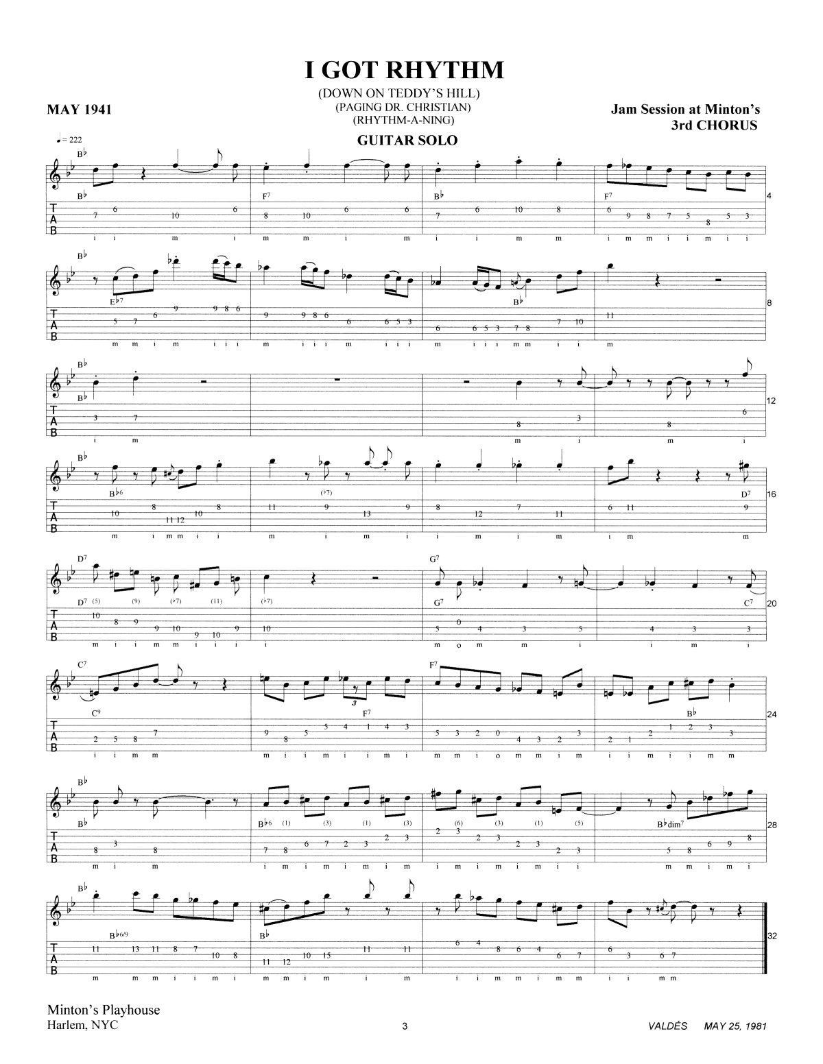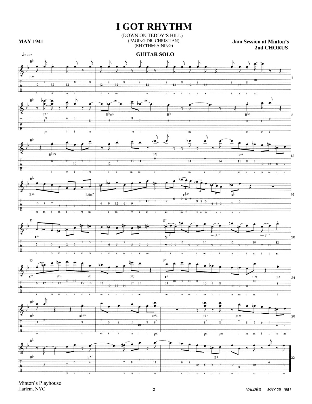 (AABA) | Key of |  | B♭ | Quarter Note = |  | 222 | Time: |  | 3:17 |