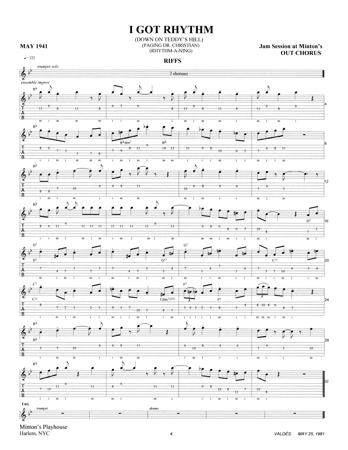 |  | 5 ½  CHORUSES  +  5-Bar Tag: |
