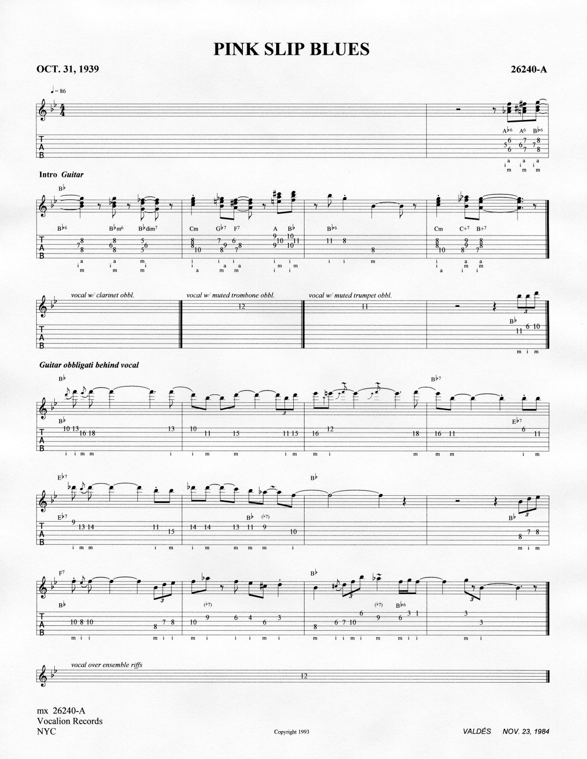 this later Vocalion session, only one take is recorded.
