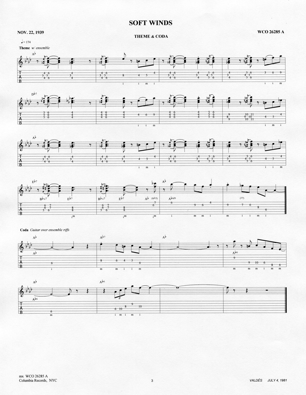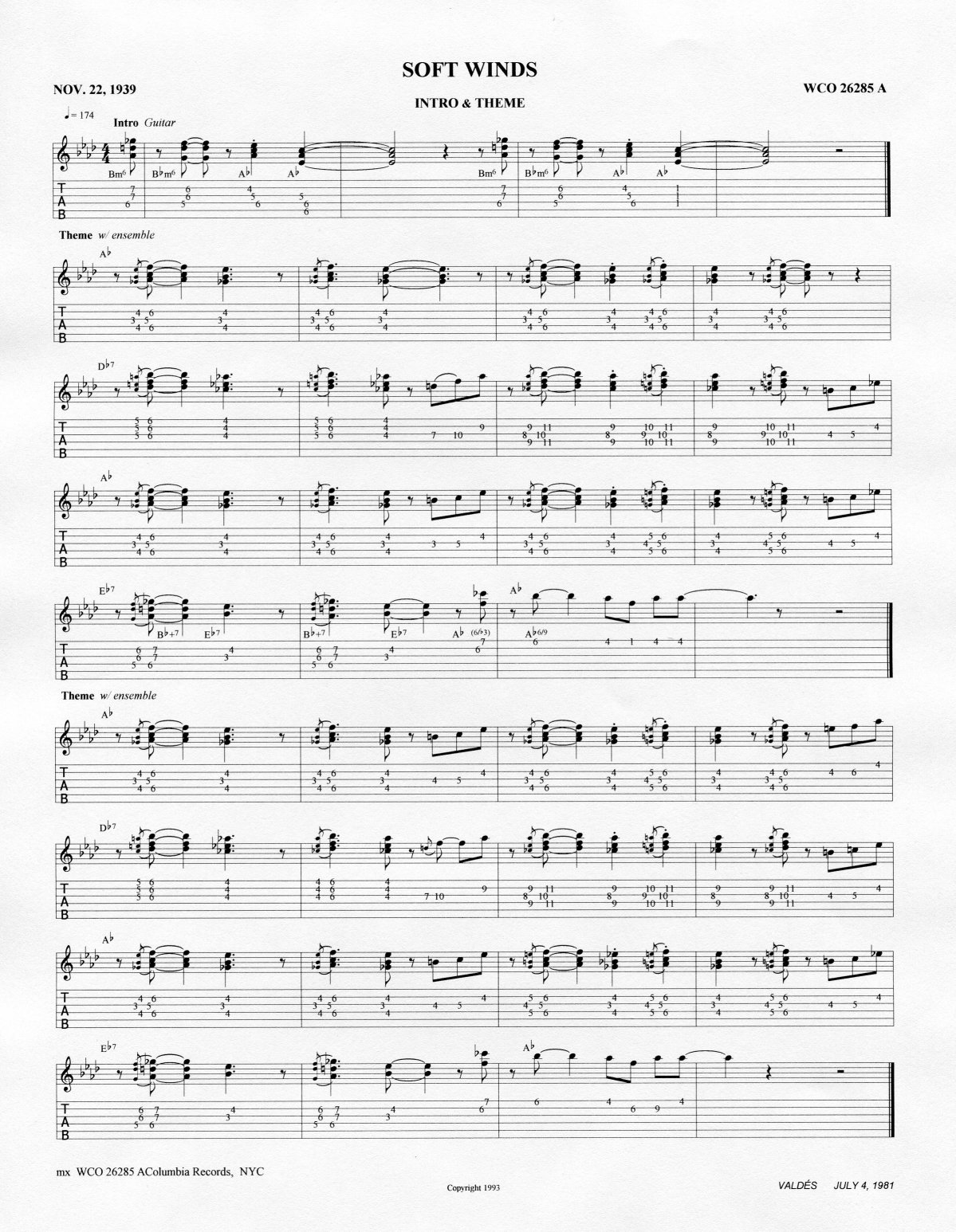 Soft Winds was later recorded by guitarists Bill Jennings (1955), Herb Ellis (1957), Wes Montgomery (1958), Kenny Burrell (1959), Kenny Burrell/Jimmy Smith (1963), Ed Bickert (1976), Charlie Byrd/Herb Ellis/Mundell Lowe (1996).