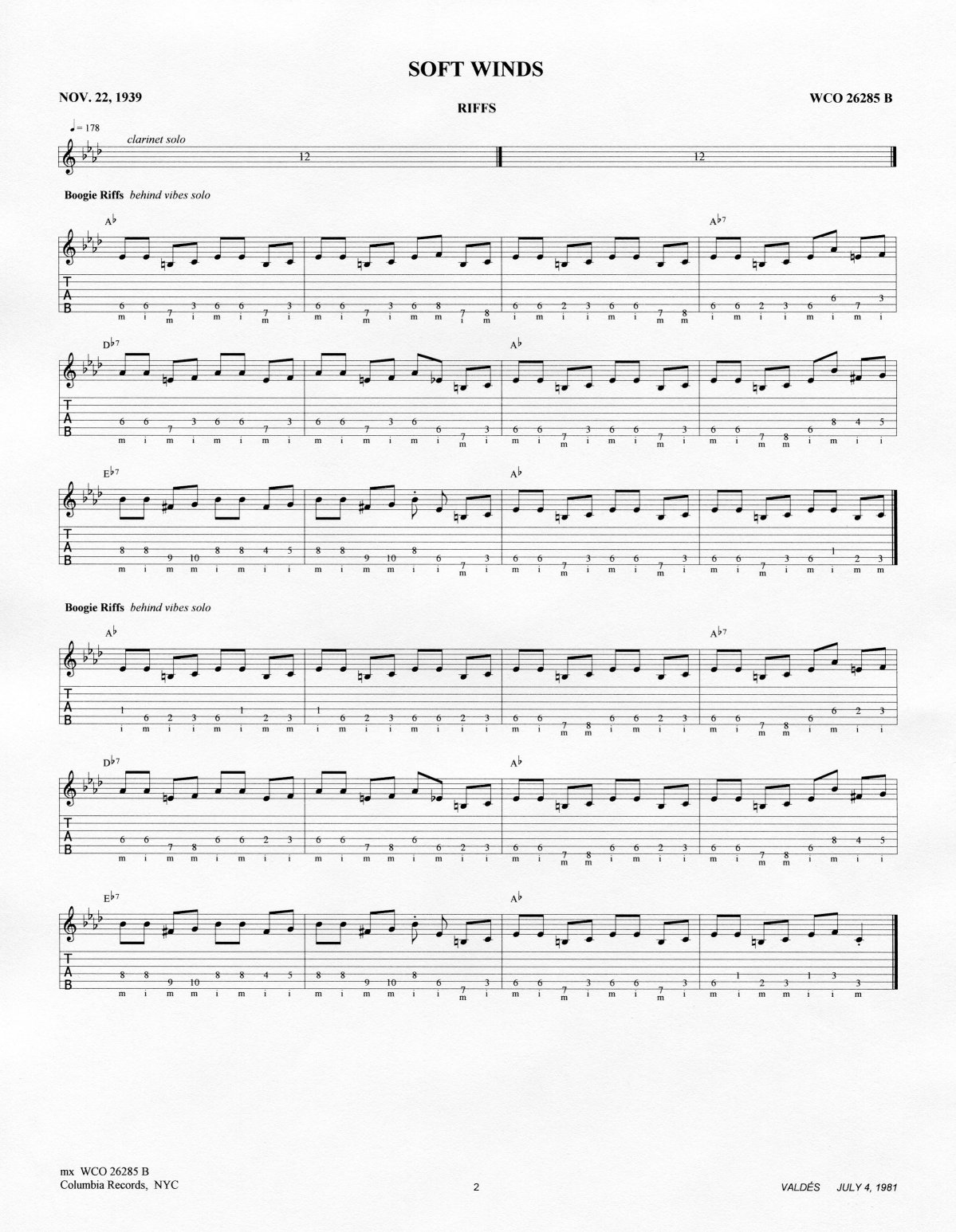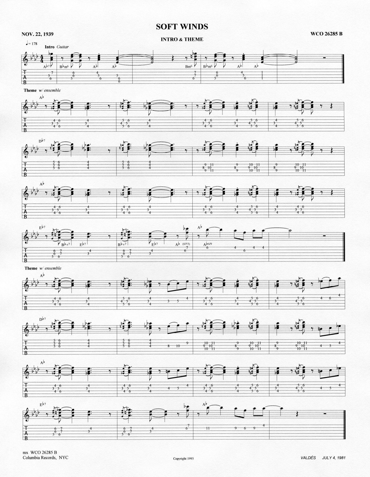 WCO 26285 B – master take – Columbia Studios, NYC |