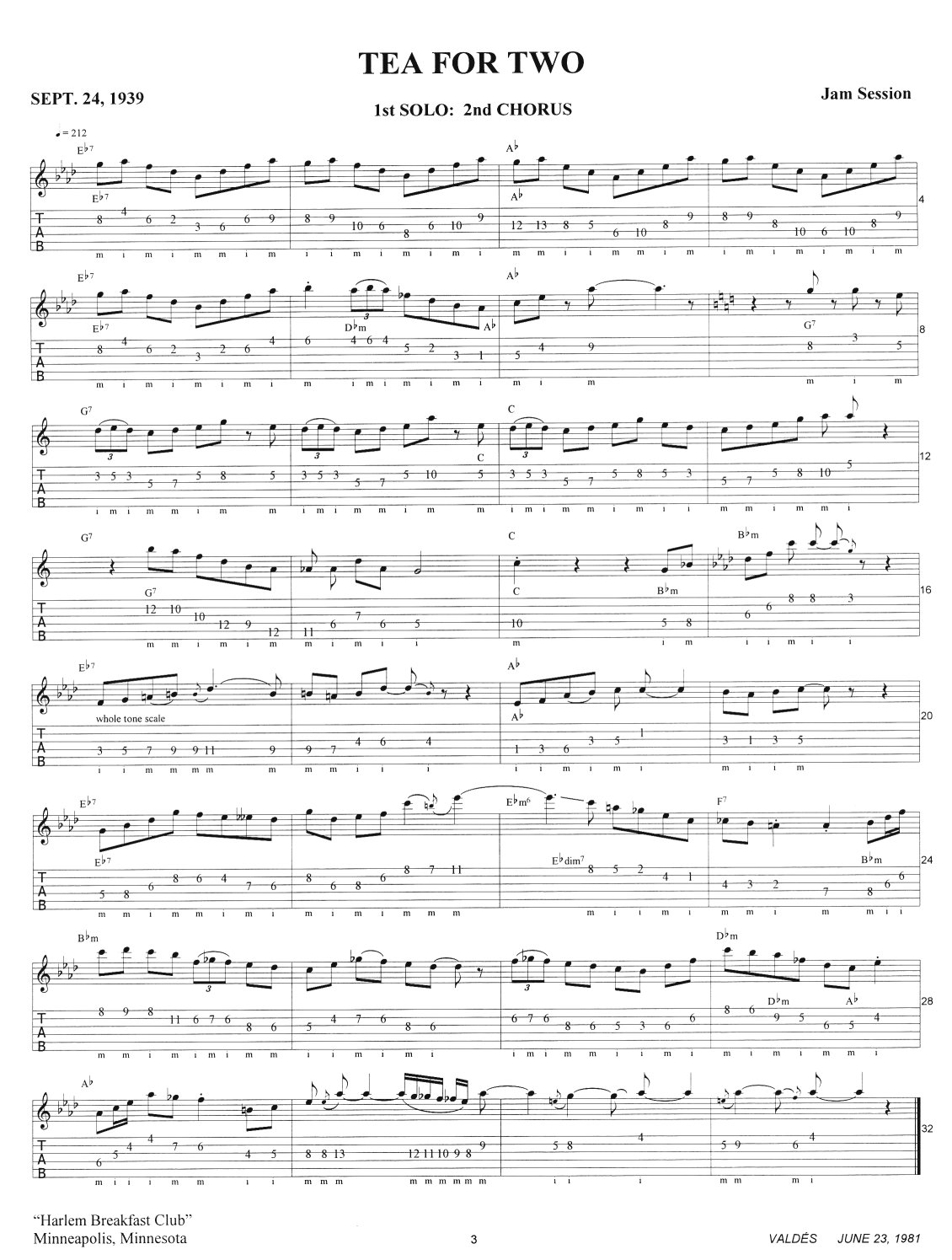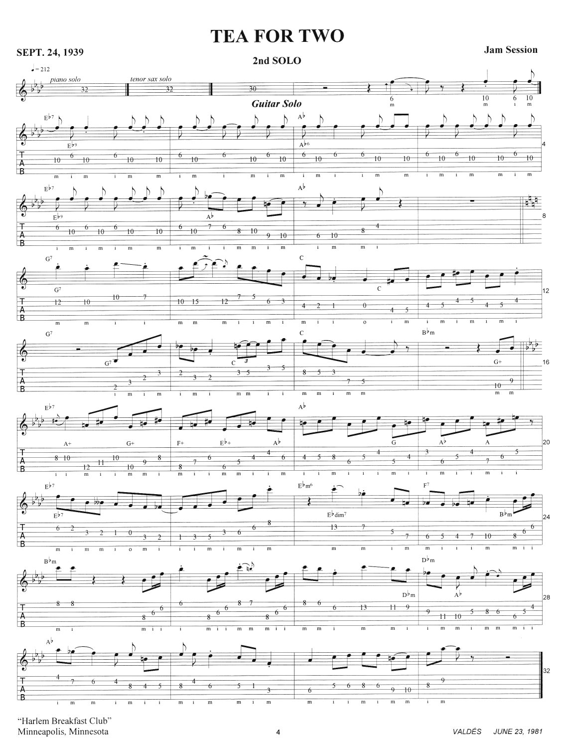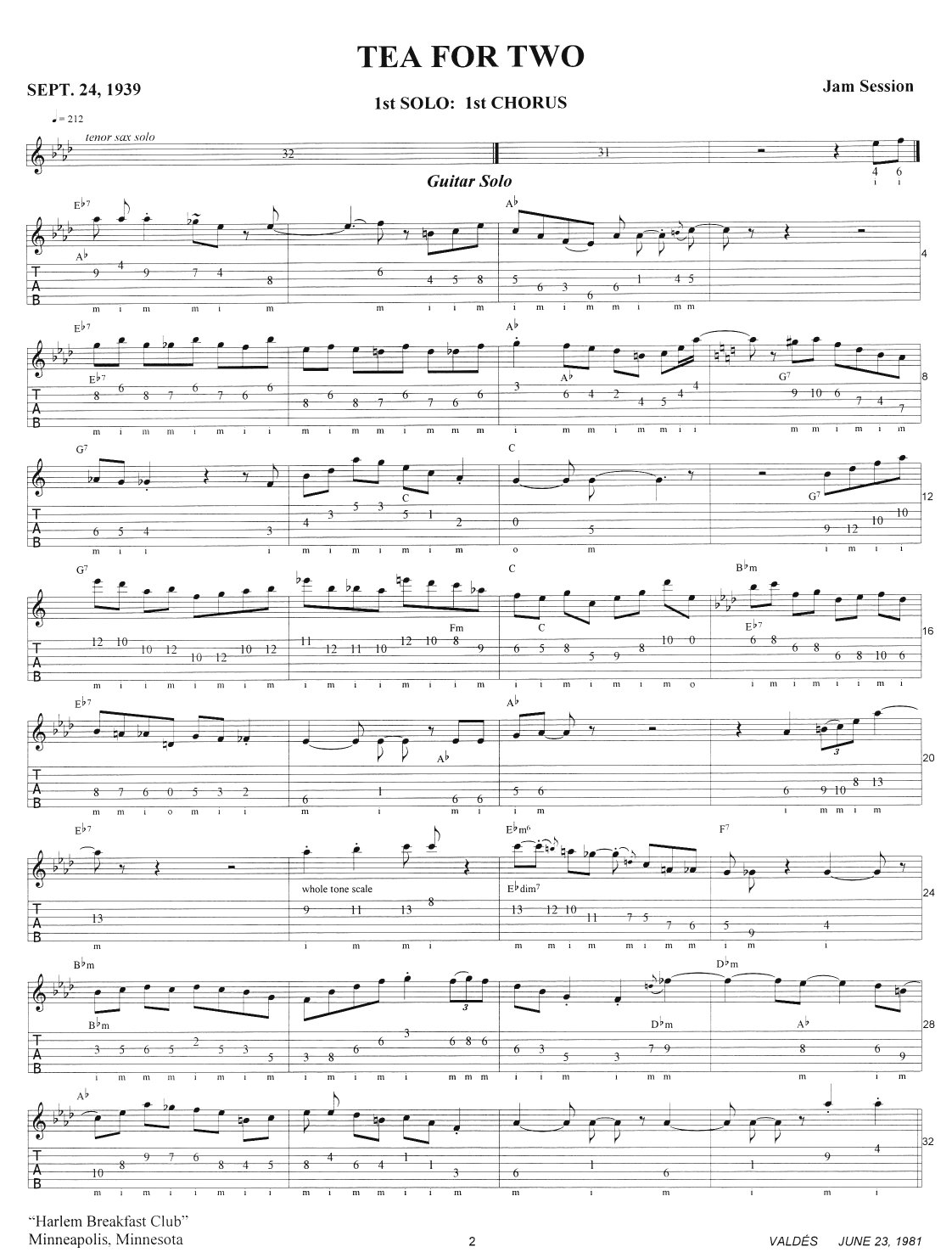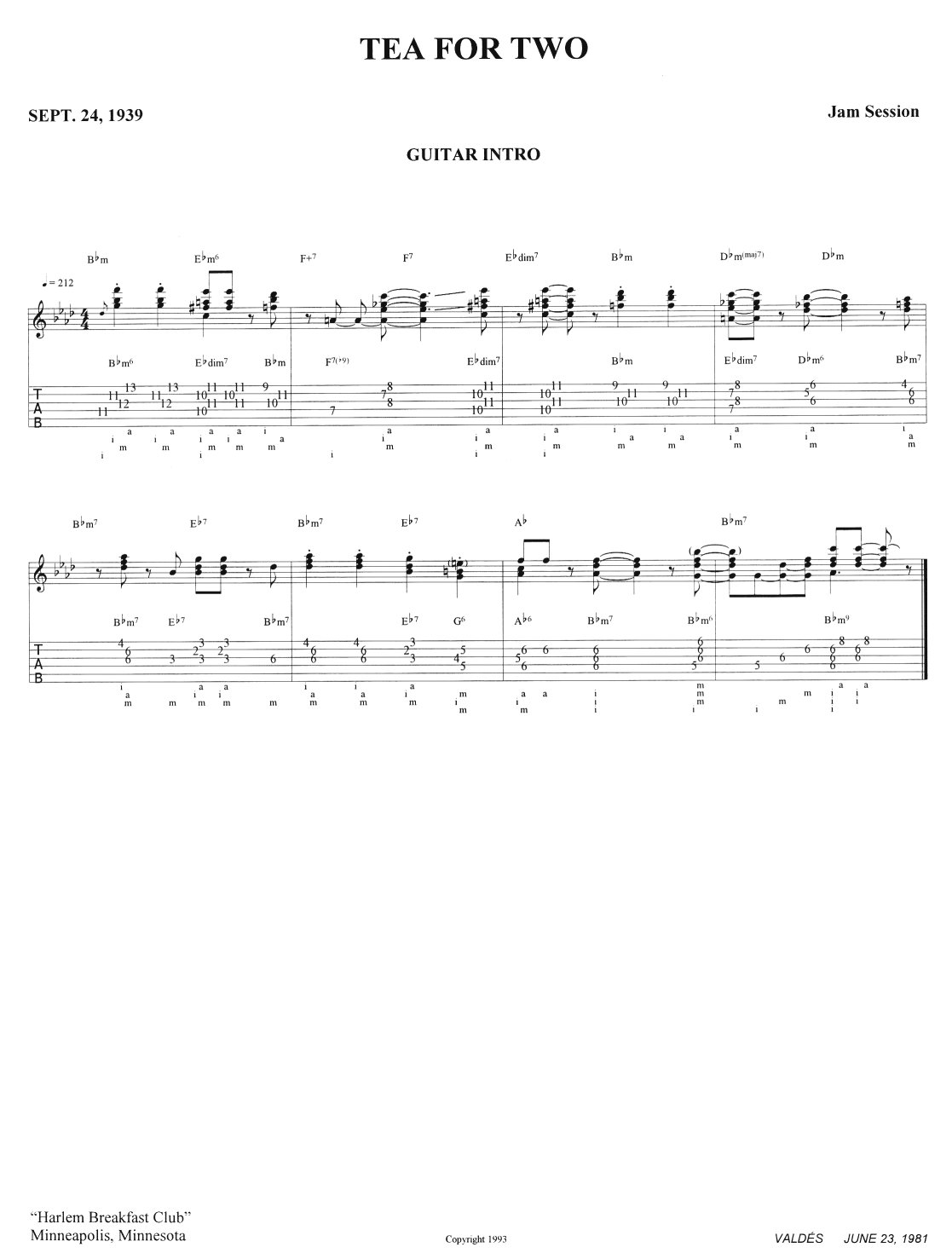 Minneapolis. Tea for Two was one of three tunes recorded