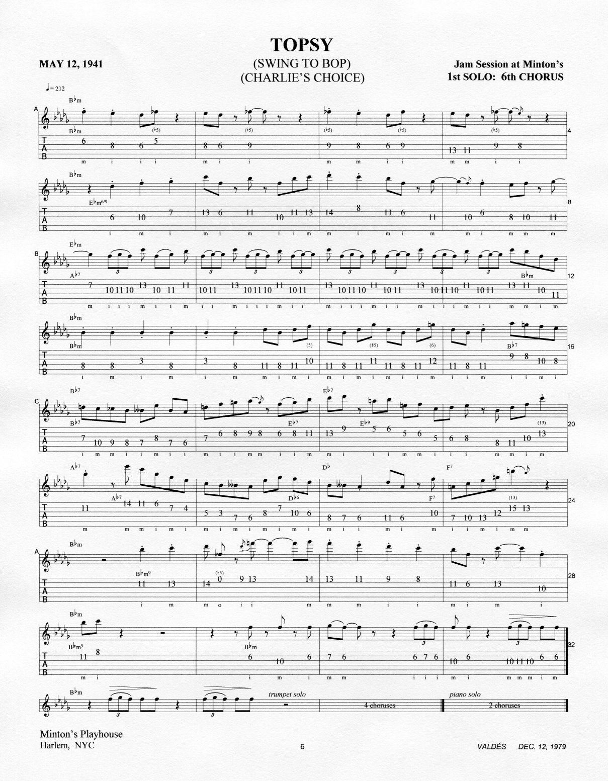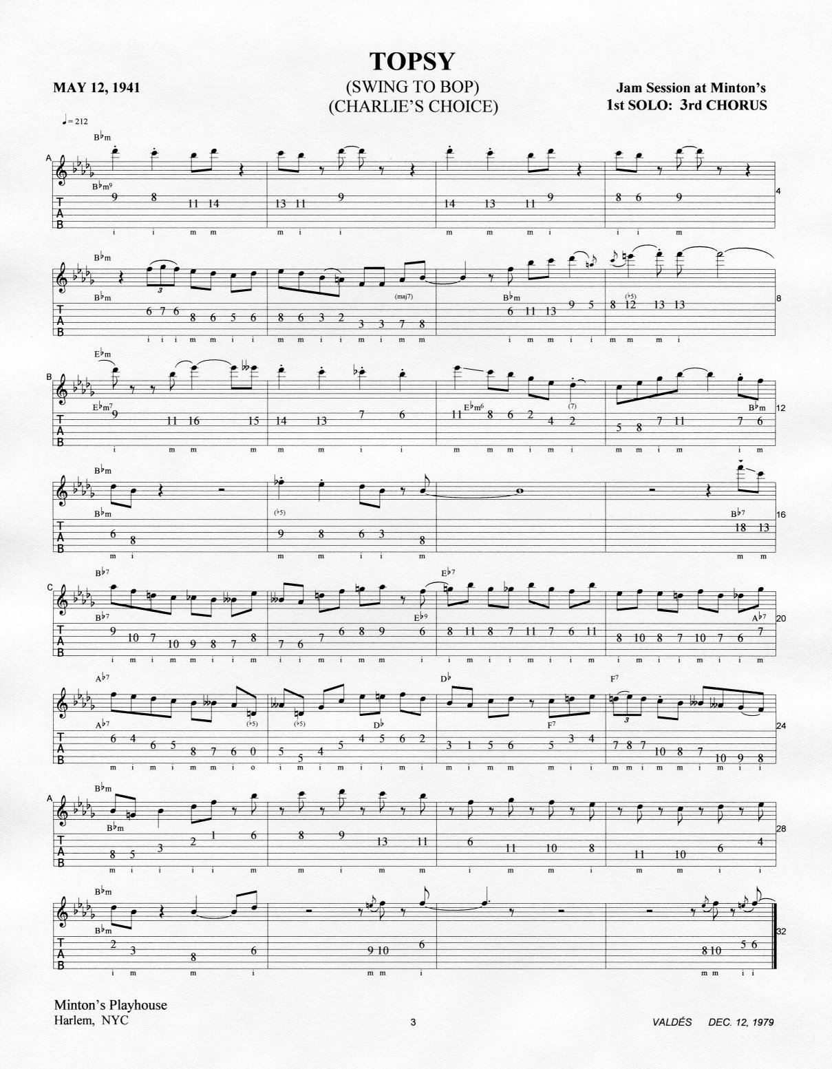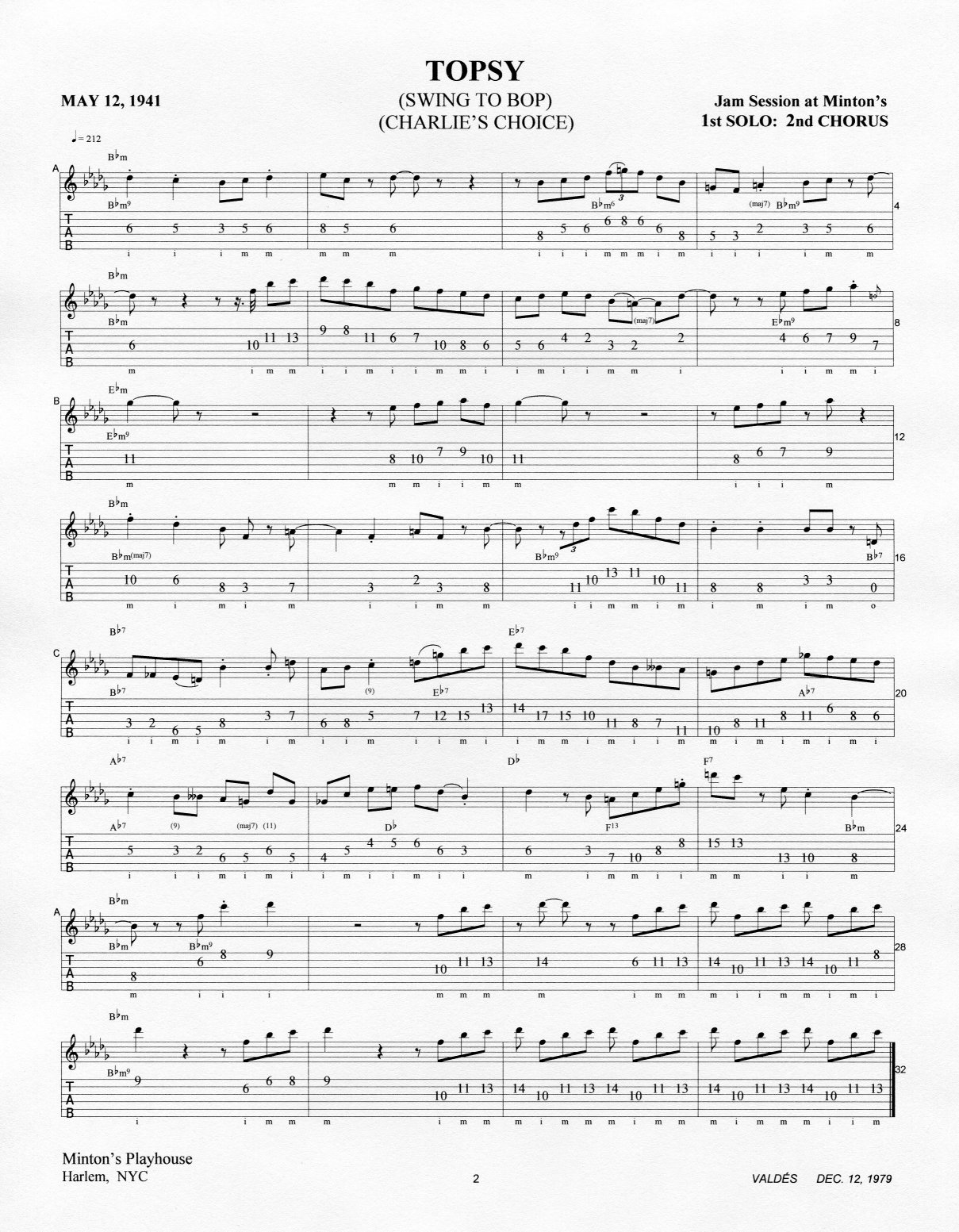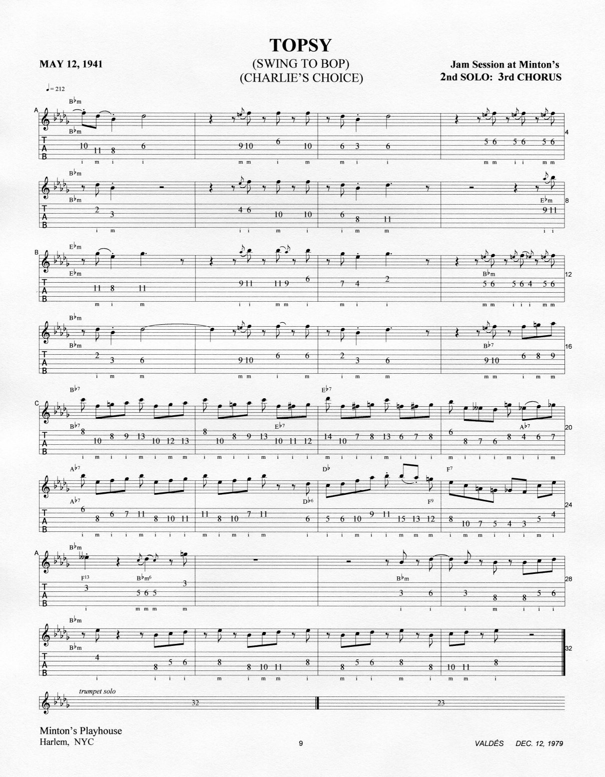 The incomplete recording begins halfway into the sixth measure with Charlie Christian