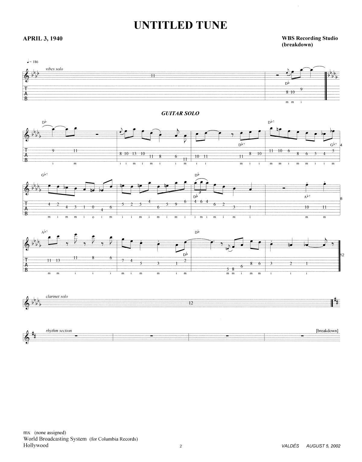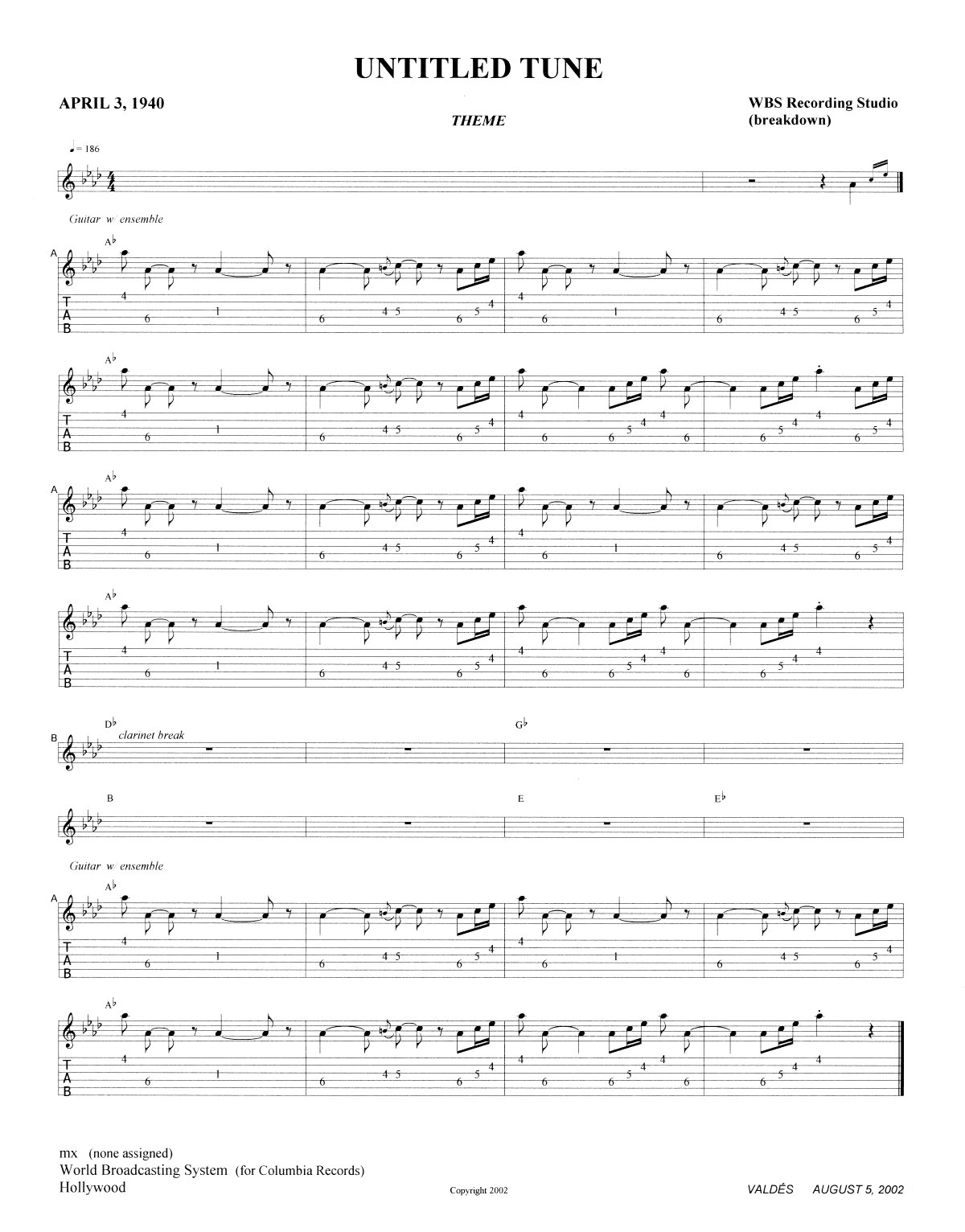 key of C, and a 12-bar clarinet solo.  CCs solo on the complete take is not